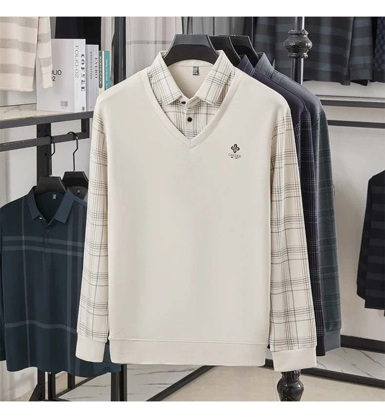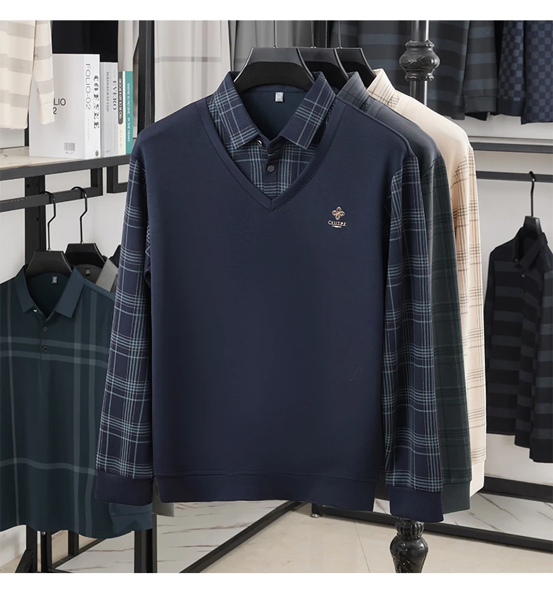 Lorant – Men’s Slim Fit Long Sleeve Polo Shirt with Layered Plaid Design